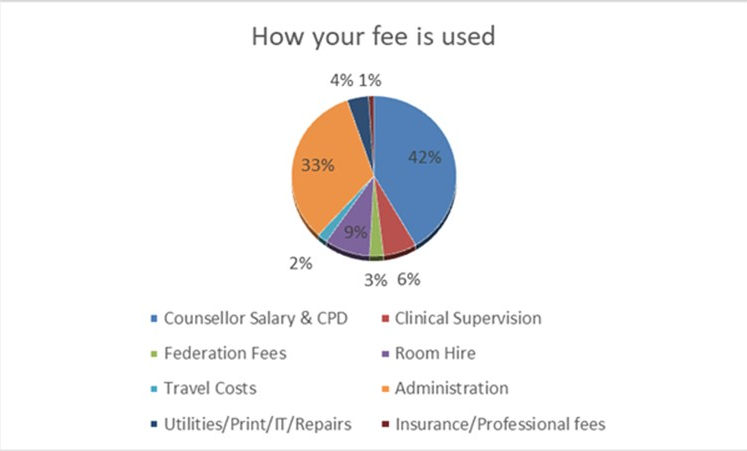 Donations make all the difference to us so if you are able to pay more than these counselling charges the additional money goes directly to support the charity’s bursary and its aim to offer a service to everyone regardless of their ability to pay the full cost of counselling.